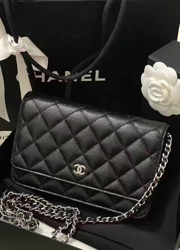 Chanel 的荔枝皮(也叫做 Caviar 小牛皮)是經典款式之一,翻蓋包、卡包常見這種材質。比起羊皮更耐用、挺度更好。